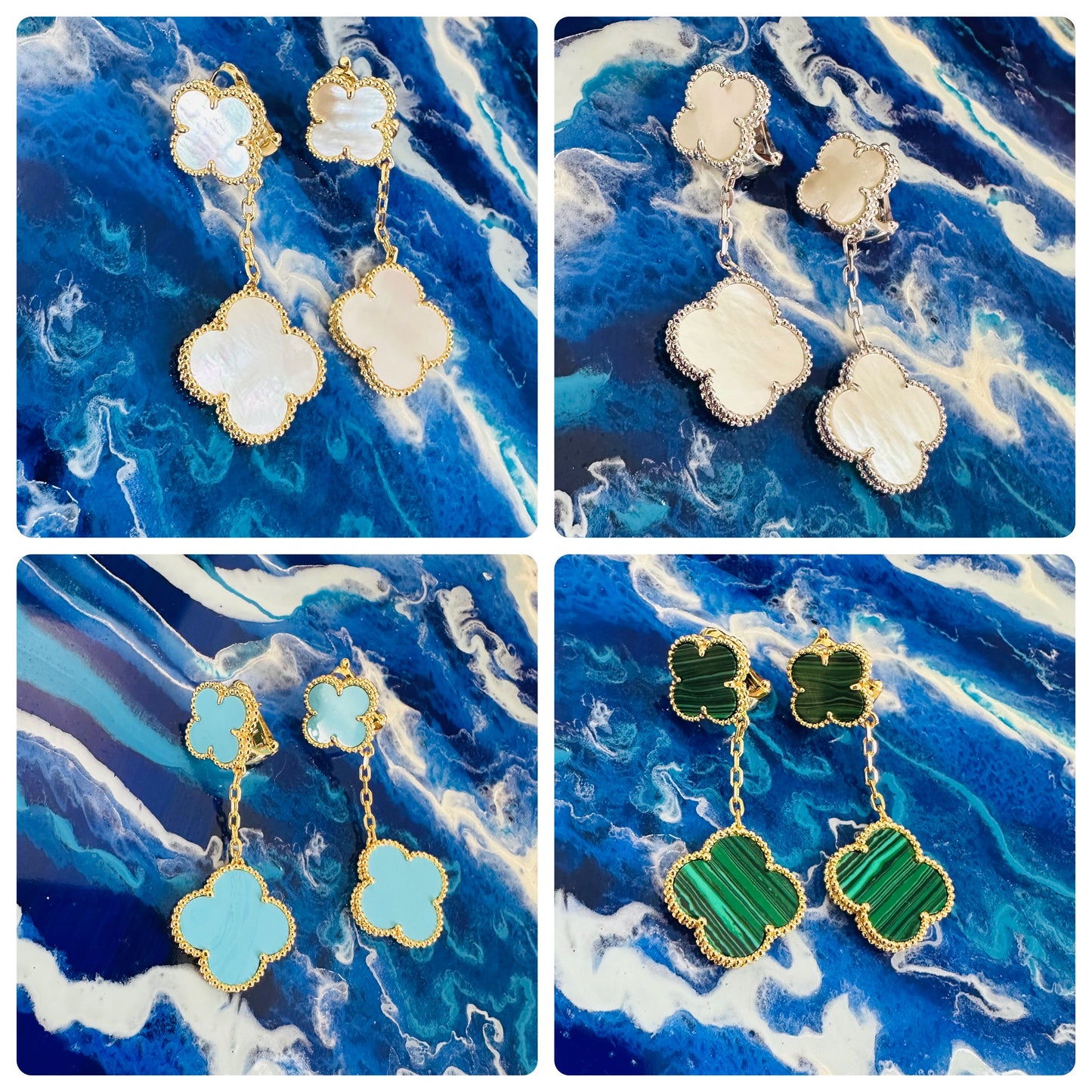 Available in silver or gold: mother of pearl, black, dark green, turquoise, periwinkle, pink mother of pearl